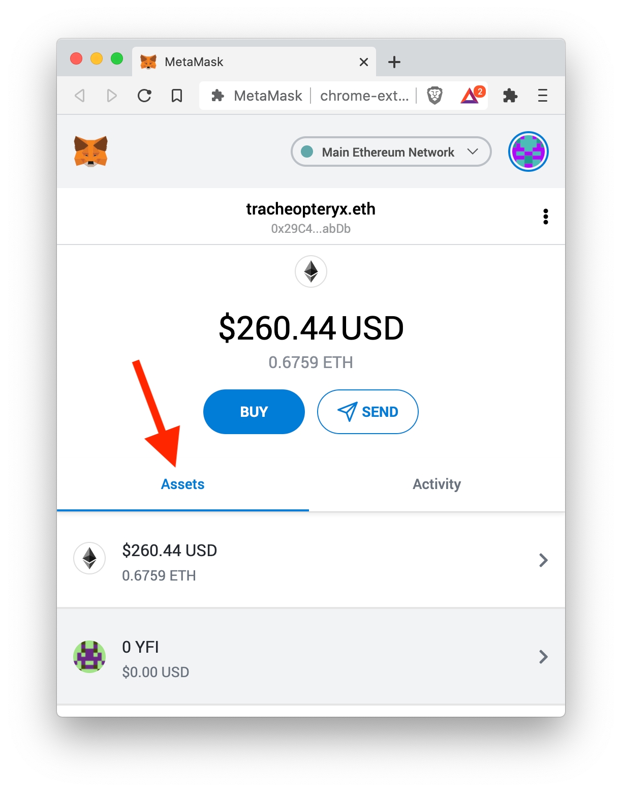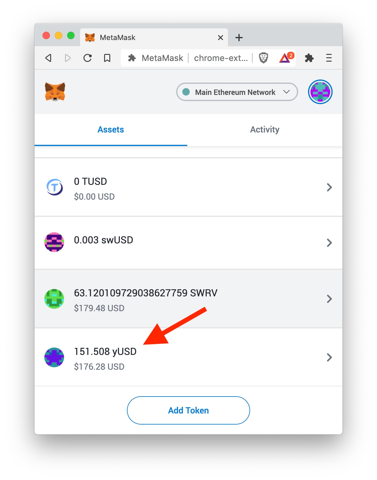 7) Hooray! Now you can see your balance of yUSD. Click Add Tokens