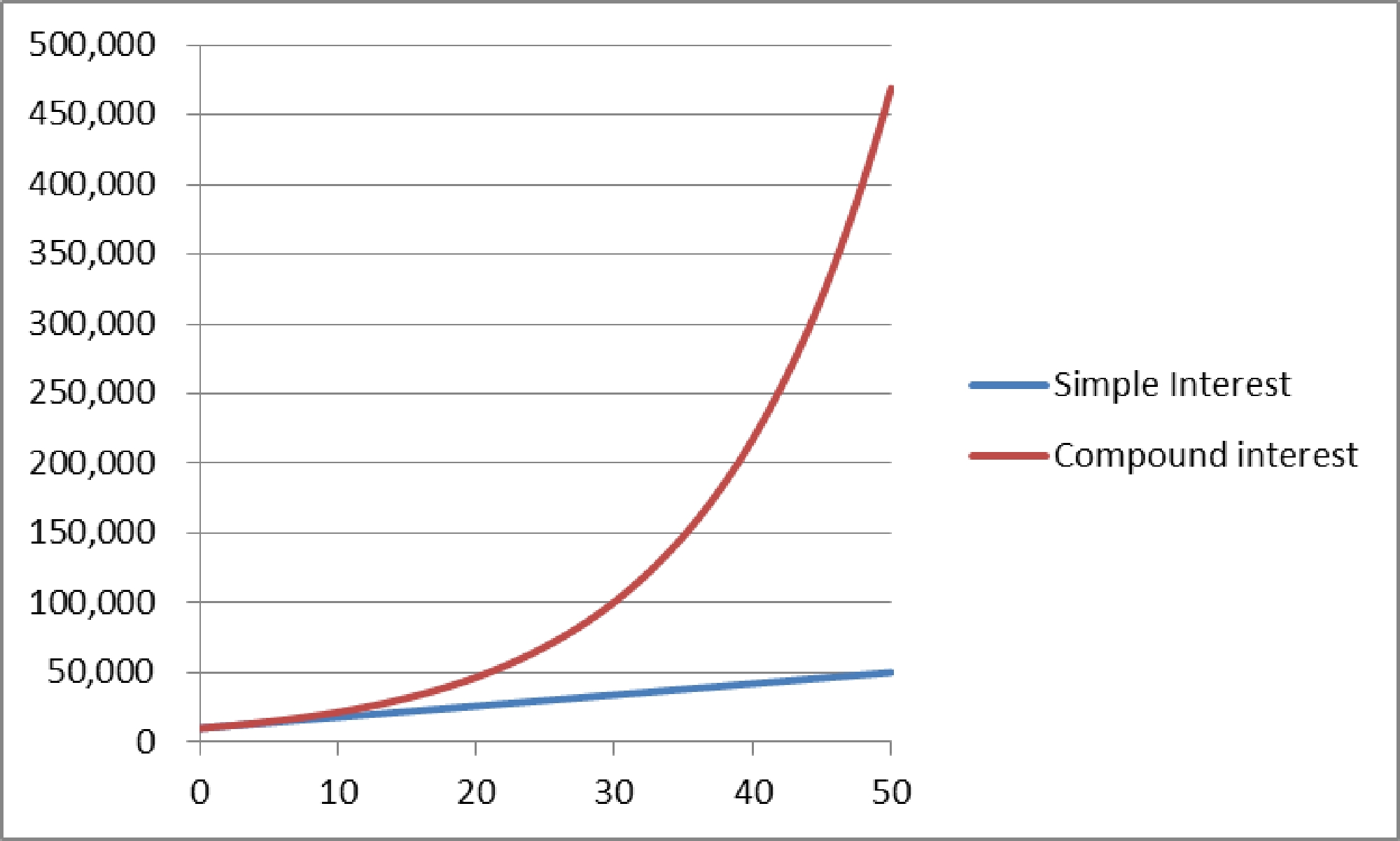 A bank's interest rate is constant: either linear or compounding. The interest rate is multiplied by the asset value each period.